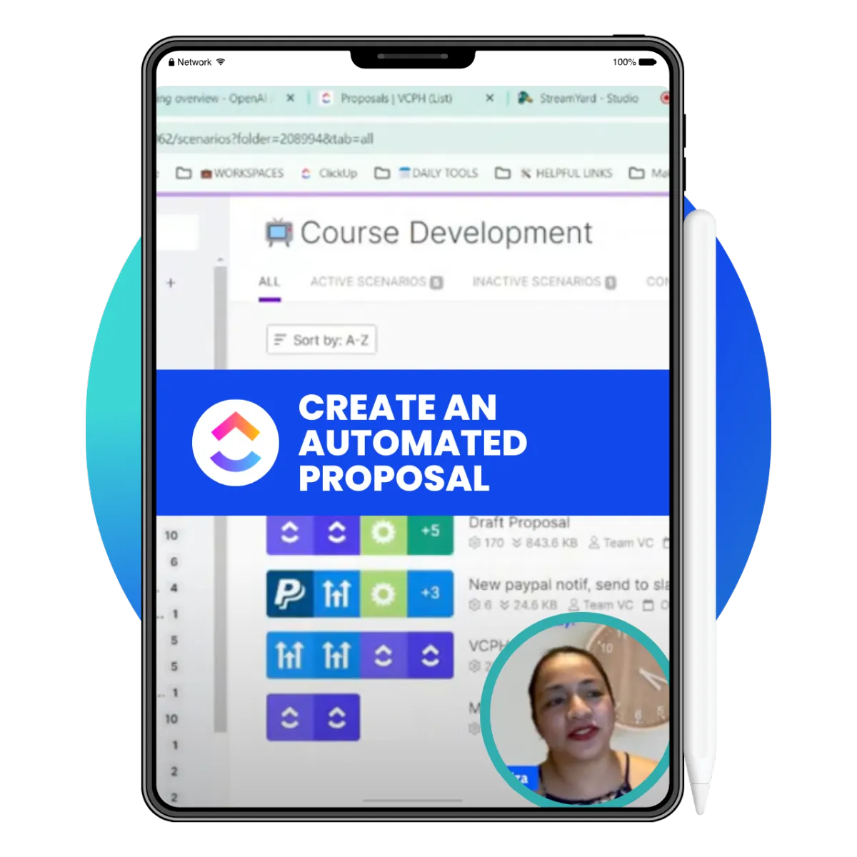 You’ll learn everything from ClickUp basics to advanced lessons, including automations, integrations with Make.com and Zapier, and ClickUp best practices.